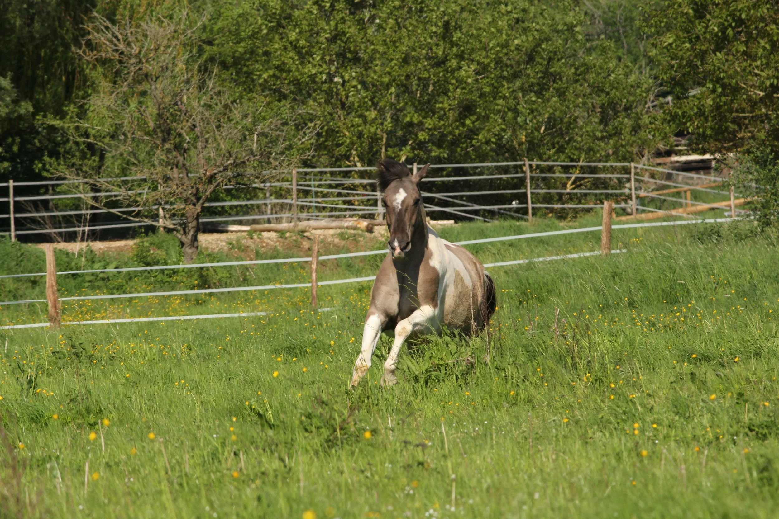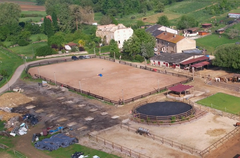 L'équidé dispose d'une terrasse en béton couverte, un box et un accès à un paddock stabilisé